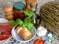 1. Дыню очистить, нарезать на кубики. Оставить немного дыни для украшения. Хлеб размочить. Вяленые помидоры обсушить на бумажной салфетке, чтобы ушло лишнее масло. |