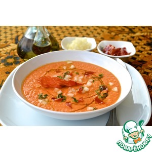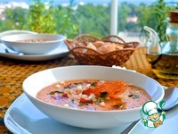 Описание: Это довольно необычный суп со сладко-солёным вкусом, основанный, как и все супы гаспачо, на трёх ингредиентах – хлебе, чесноке и оливковом масле. Сладость дыни в нём смягчается солоноватыми сушеными помидорами, а уксус и лимонный сок придают яркости. Подаётся этот суп очень холодным как первое блюдо или в маленькой рюмочке как amuse bouche (маленькая закуска, которую подают до основных закусок, буквально «развлечение для рта»). Если вам нравится сочетание дыни и вяленого мяса, вам понравится и этот суп.
