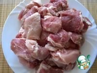 Мясо порезать на крупные куски. Я использовала свиной ошеек. |