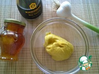 Далее, делаем заправку. Горчицу, мед, соевый соус соединить. |