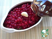 Сверху выкладываем смородину ( или вишню или сливу) с сахаром и один зубчик чеснока. Горшочки накрываем крышкой. Отправляем в разогретую духовку до 180-190 гр. На 60-65 минут. |