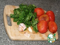 На дно блендера положить кинзу, лук, чеснок, чипотле перец. Сверху помидоры. Это важно, таким образом нижние ингредиенты хорошо перемелятся, а помидоры не будут *перебиты*. И не забудьте про те обгорелие кусочки, которые мы сохранили.