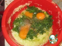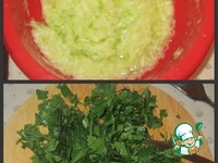 Кабачок натереть на терке, добавить соль и оставить на некоторе время, чтобы выделился сок, который в дальнейшем сольем) |