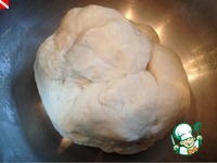 Замешиваем эластичное тесто. Можно руками, можно при помощи миксера или хлебопечки. Накрываем влажным полотенцем и даем отдохнуть минут 40-50. |