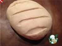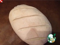 Выкладываем его на противень (если не пользуетесь формой), делаем надрезы, опять накрываем влажной тканью и оставляем для расстоя. |