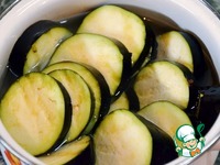 Баклажаны нарезать кружками толщиной 1 см. и оставить в соленой воде на 20 минут |