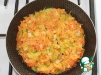 Лук, морковь, болгарский перец обжарим на разогретой сковороде с растительным маслом. |