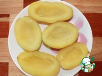 Остывший картофель очистим от "мундира", разрежем пополам. |