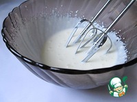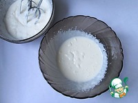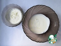 Ждем, когда сметанный крем немного схватится, взбиваем сливки и аккуратно соединяем обе массы. |