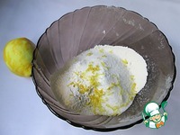 Добавляем к просеянной муку сахар, ванилин и тертую цедру половины лимона, перемешиваем. |