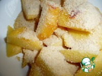 Персики очистить, порезать небольшими кусочками, засыпать сухарями панировочными. |
