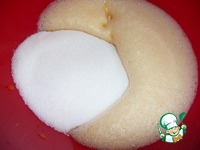 Сухую смесь добавить в яичную и продолжить взбивание. |