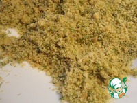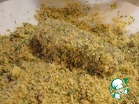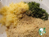 Очень хорошо перемешиваем. Сыр с зеленью как бы втираем руками в сухари до получения однородной панировки. |
