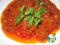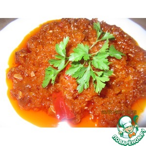 Готовую закуску горячей разливаю по банкам и закрываю. Закуску можно есть и в горячем и холодном виде. |