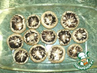 Грибы очистить, отделить шляпки от ножек и при помощи чайной ложки из шляпок выбрать грибную массу. |