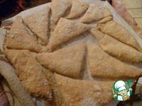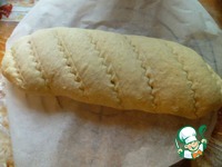 Завернуть рулетом, края защипать, придать форму батона. Перенести на противень с пергаментом и сделать насечки поглубже. Я делала ножом для теста. |