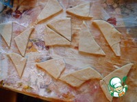 Складываем вдвое. Снова смазываем, складываем, смазываем... Я делала 4 слоя. Затем в холод на 20 минут. |