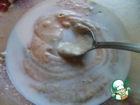Влить 100 мл молока комнатной температуры, добавить щепотку соли, 1 ст. л. сахара и хорошо перемешать. |