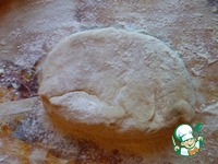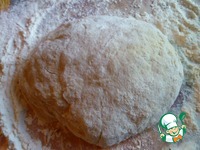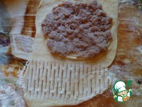 Делим тесто на две части. Из одной части я сделала мясную слойку. |