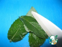 Несколько листиков мяты порубить мелко, добавить к ним чайную ложку воды, четверть чайной ложки цедры лимона. Растереть. |