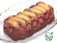 Берем форму для выпечки, немного смазываем маслом и выкладываем порезанные дольками фрукты. Вы можете применить любые фрукты, у меня слива и персик. |