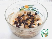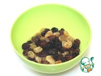 Изюм промыть и залить горячей водой, через 10 мин. воду слить. |