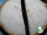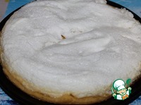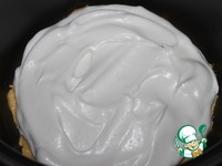Белки и 150 г сахара взбить до устойчивых пиков и размазать по тесту. |