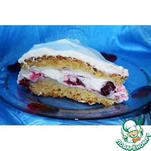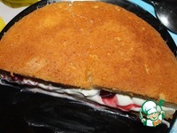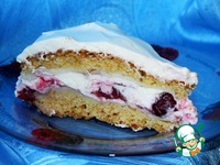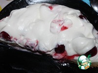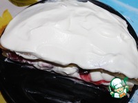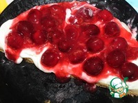 На одну половину выложить вишневый кисель (на безе, у меня чуть смазано сливками, но так и подтекать больше будет). |