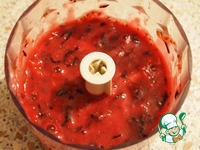 Через марлю процедить сок из перемолотых смородины и мандарин. |