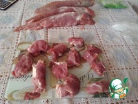 Нарезать свиную вырезку кусочками толщиной 1,5 см. |