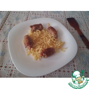 Рулетики пожарить на растительном масле, примерно 1 минуту с каждой стороны. Затем запекать в духовке при температуре 250℃ 50 минут. |