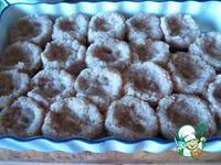 Скатать круглые шарики, размером с небольшую тефтелю (1 стол. лож. фарша), обвалять в сухарях, расплющить. |