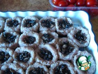 Выдавить ямку-гнездышко, выкладываем по котлетке на каждый кружок баклажана. |