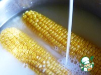 Кладем кукурузу в кипящую подсоленную воду. Варим мин 40. Крышку плотно не закрываем. |