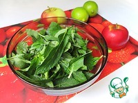 Выжимаем из яблока сок, нам потребуется 50 мл. Один лайм режем небольшими кусочками, из другого выжимаем сок. Листья мяты режем, растираем с 1 ст. л. коричневого сахара. Даем настояться 10 минут. |