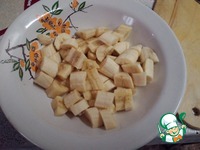 Очистить бананы от шкурки, нарезать, положить в миску. |