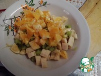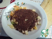 Затем натереть на мелкой терке шоколад, добавить к фруктам. |