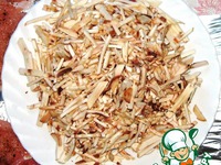 Порезать тонкими полосками. Я пользовалась "берноровской теркой" |
