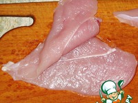 Отделить филейную часть и разрезать вдоль грудку надвое. |