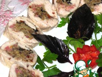 Описание: Нежная куриная грудка с ароматным беконом, грибочками и свежими листиками базилика в форме рулетика. Такое не купишь в магазине. А вот приготовить реально просто.