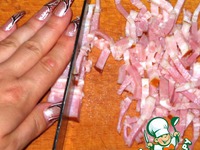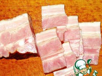 Грудинку порезать на тонкие пластинки. |