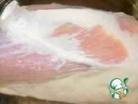 Заворачиваем мясо в пергаментную бумагу и фольгу. Помещаем в заранее разогретую духовку до 230 гр. На 20 минут, не более. Выключаем полностью духовку и оставляем мясо в ней до полного остывания. |