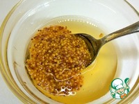 Смешиваем жидкие компоненты. Горчица, мед, белый бальзамический уксус или яблочный уксус или белое сухое вино и оливковое масло. Перемешиваем. Соединяем с сухими компонентами. |