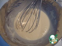 Приготовить сливочную заливку: взбить яйцо, желток с двумя ложками сахара и пакетиком ванилина, добавить 1,5 ст. ложки муки и 200 мл сливок, все хорошо размешать. |