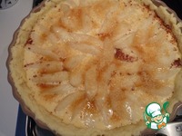На тесто высыпать тертый шоколад, выложить груши. Залить сливочной заливкой. Поставить в разогретую до 200*С духовку на 15 минут. |