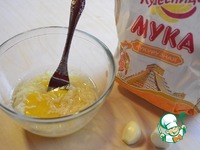 1. Сыр натереть на средней терке, выложить в миску. В эту же миску вбить яйцо, выдавить через пресс чеснок. Добавить сахар, соль. Муку пшеничную, муку кукурузную и кукурузное масло. |