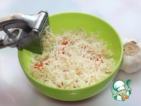 Чеснок выдавить в чесночнице, все смешать с натуральным густым йогуртом. |