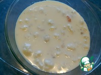 Слегка взбить яйца с молоком, добавить креветки и отваренную цветную капусту. Посолить и поперчить. Вылить смесь в смазанную маслом форму. |