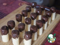 Темный шоколад растопить на водяной бане, окунуть кончики вафельных трубочек, поставить их вертикально на доску и убрать в холодильник. Пусть застывают. |