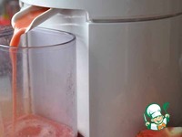 Готовим томатный рис. Для этого получаем свежевыжатый томатный сок из помидоров. |